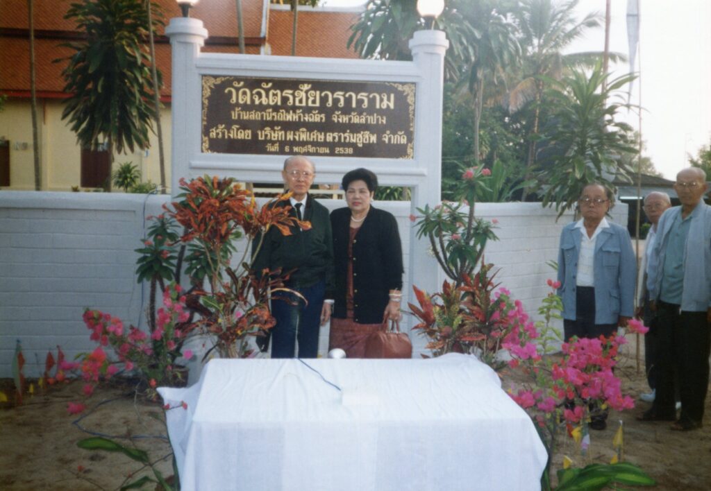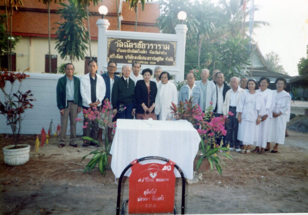 เมื่อปี 2537 ดร.สมเกียรติ ศุภโกวิท ประธานกรรมการบริษัท สมจิตต์โอสถ จำกัด และคุณสมจิตต์ ศุภโกวิท ภรรยา ได้มีโอกาสมาเที่ยวที่ลำปาง ซึ่งเป็นบ้านเกิดของ ดร.สมเกียรติฯ และได้แวะมาทำบุญ สนทนาธรรม กับหลวงพ่อตาคำ ปิยสีโล เจ้าอาวาสวัดสถานีรถไฟห้างฉัตรในขณะนั้น เมื่อคุณสมเกียรติฯ ได้ทราบว่าศาลาวัด สถานีรถไฟห้างฉัตร เก่า และคับแคบ ไม่เพียงพอจัดงานงานบุญในวันสำคัญทางศาสนา ดร.สมเกียรติฯ และคุณสมจิตต์ฯ จึงเกิดจิตศรัทธา บริจาคทรัพย์จำนวนหนึ่งเพื่อจัดสร้างศาลาใหม่ และได้ถวายพระประธาน อีกทั้งยังทำป้ายชื่อวัดให้ใหม่ โดยได้มีพิธีทำบุญศาลาใหม่ และเปิดป้ายวัด ในวันที่ 6 พฤศจิกายน 2538 ครับ ㋡