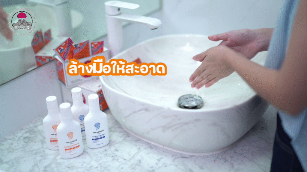การล้างหน้าให้ถูกวิธี ขั้นแรกควรล้างมือให้สะอาดก่อนนะคะ