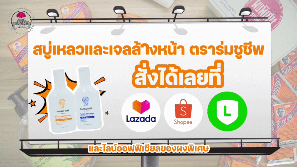 สอบถาม หรือสั่งซื้อสินค้าภายใต้ พาราชู้ทแบรนด์ (แบรนด์ตราร่มชูชีพ) ได้ที่ Line : @parachutebrand ( มี @ ด้วย) หรือสั่งผ่าน shopee, Lazada ได้เลย